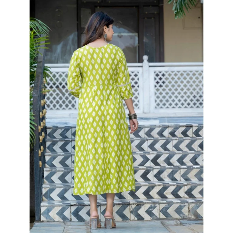 Generic Women’s Rayon Print With Embroidery Work A-Line Kurti (Green)