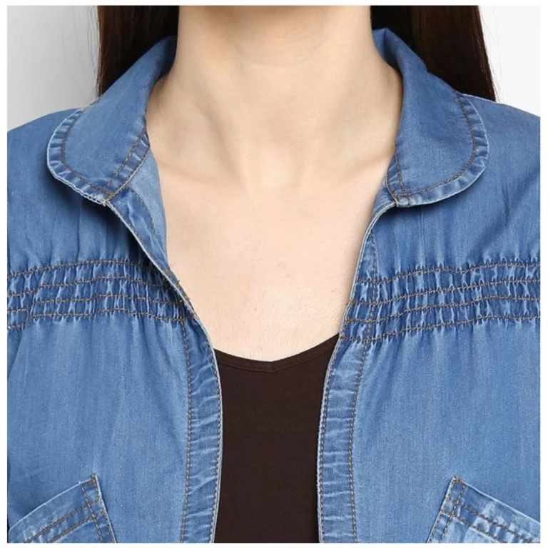 Generic Women’s Denim Smocking 3-4th Sleeves Shrug (Blue)