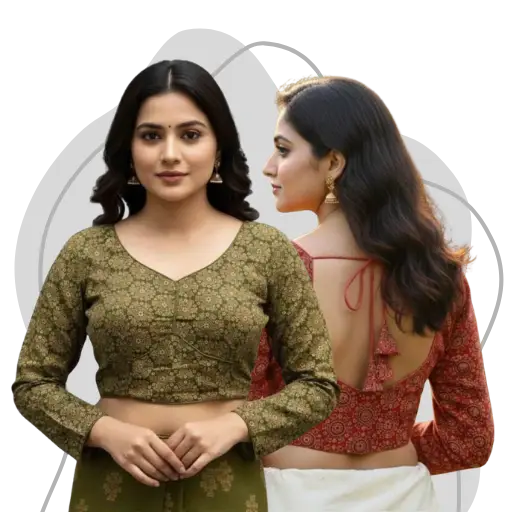 Generic Women’s Ajrakh Cotton Round Neck Padded Blouse (Navy, 38 Ready Size (Self-Alterable 36–40)