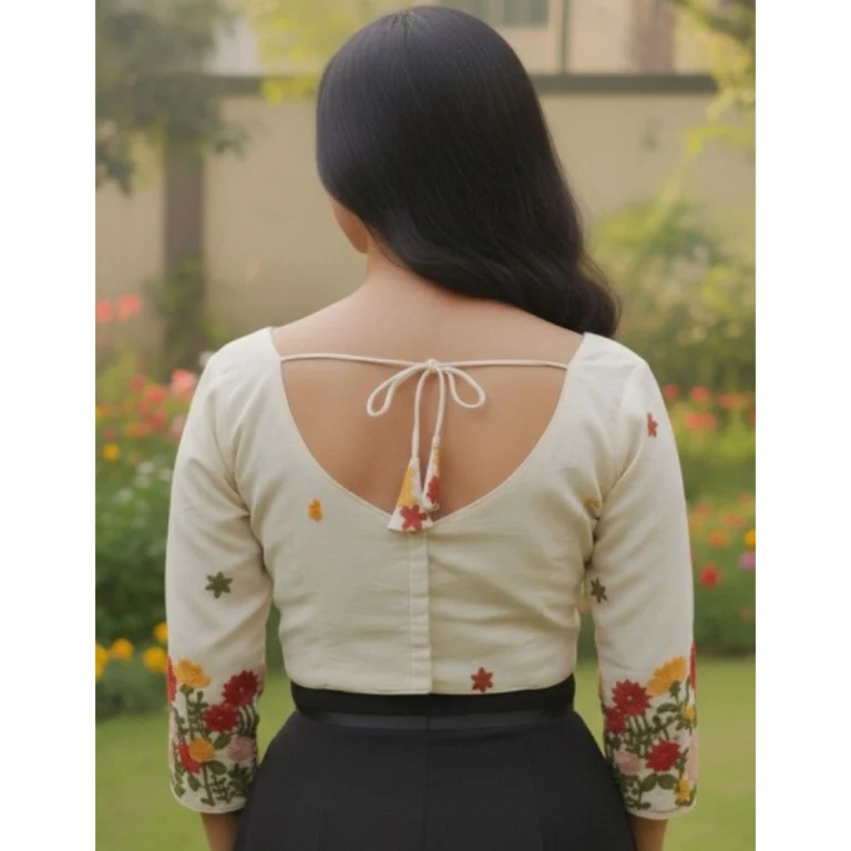 Generic Women’s Cambric Cotton Round Neck Padded Blouse (White, 38 Ready Size (Self-Alterable 36–40)