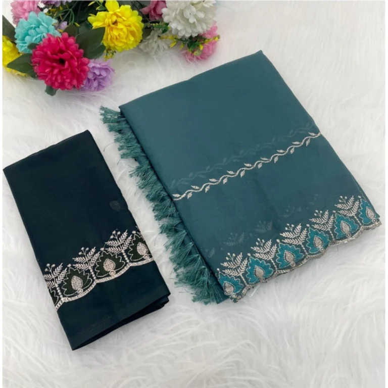 Generic Women’s Georgette Embroidered Saree With Unstitched Blouse 5.5Mtr (Teal)