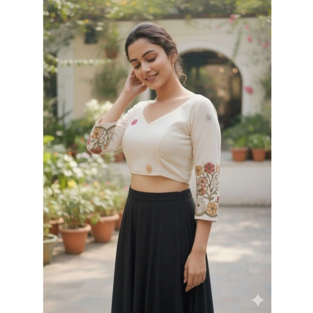 Generic Women’s Cambric Cotton Round Neck Padded Blouse (White, 38 Ready Size (Self-Alterable 36–40)