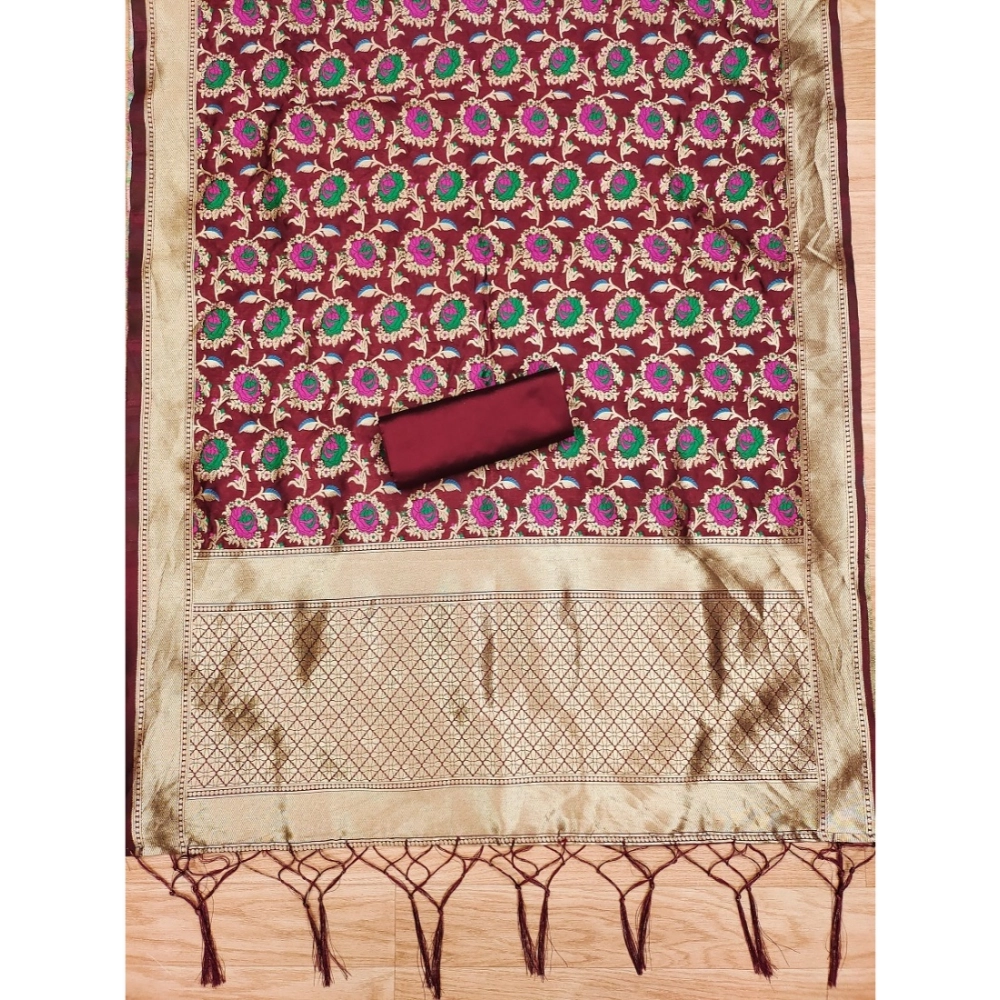 Women’s Banarasi Silk Printed Unstitched Salwar Suit Material With Dupatta
