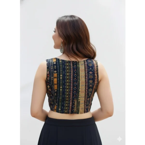 Generic Women’s Ajrakh Cotton Round Neck Padded Blouse (Navy, 38 Ready Size (Self-Alterable 36–40)