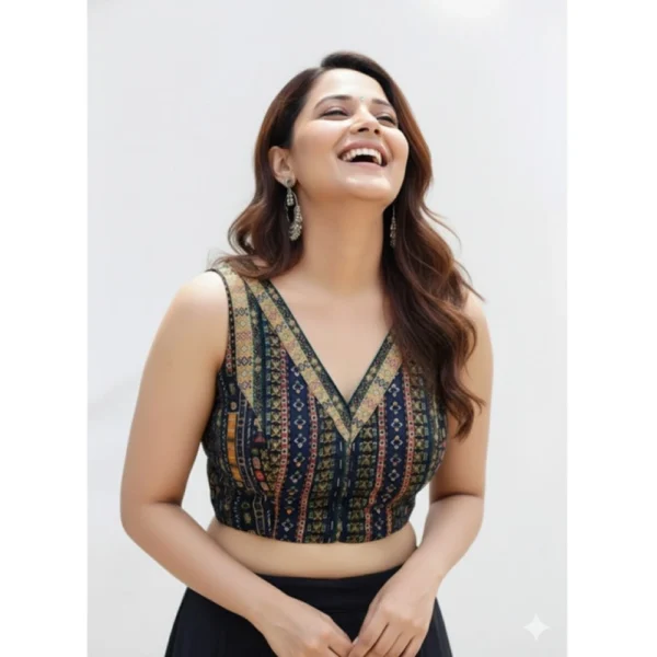 Generic Women’s Vichitra Silk V Neck Padded Blouse (Navy, 38 Ready Size (Self-Alterable 36–40)