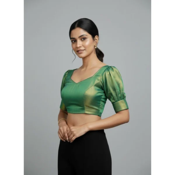 Generic Women’s Vichitra Silk V Neck Padded Blouse (Green, 38 Ready Size (Self-Alterable 36–40)