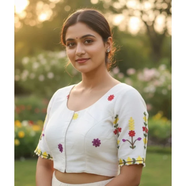 Generic Women’s Cambric Cotton Round Neck Padded Blouse (White, 38 Ready Size (Self-Alterable 36–40)