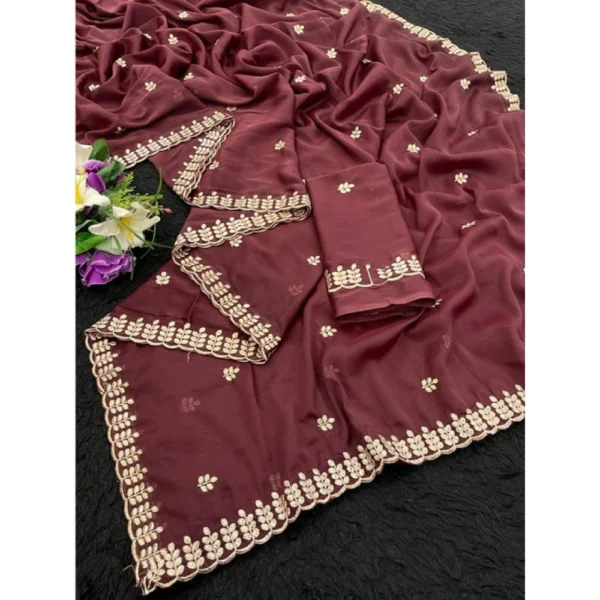 Generic Women’s Georgette Embroidered Saree With Unstitched Blouse 5.5Mtr (Wine)