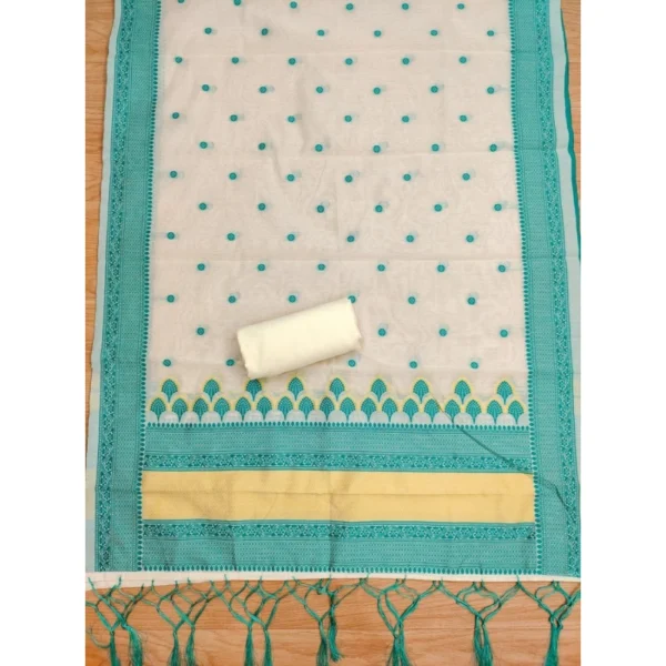 Generic Women’s Banarasi Silk Printed Unstitched Salwar Suit Material With Dupatta (White, 3Mtrs)