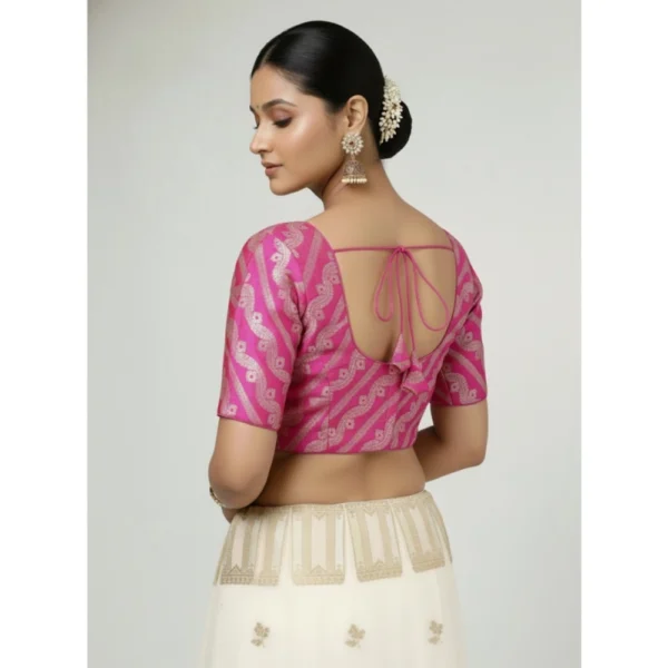 Generic Women’s Jacquard Zari Round Neck Padded Blouse (Pink 38 Ready (Self Alterable 36–40)