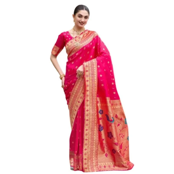 Generic Women’s Silk Blend Paithani Saree With Unstitched Blouse 5.5Mtr (Pink)