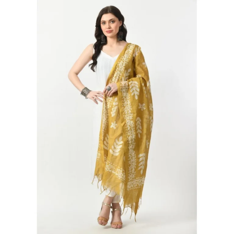 Generic Women’s Cotton Printed Dupatta (Mustard, Length: Free Size)