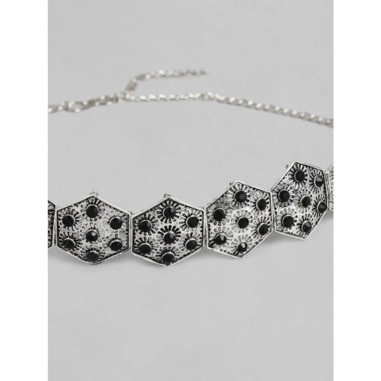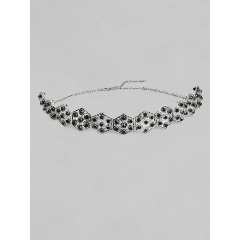 Generic Women’s Rose Gold Plated Alloy Choker (Silver & Black)