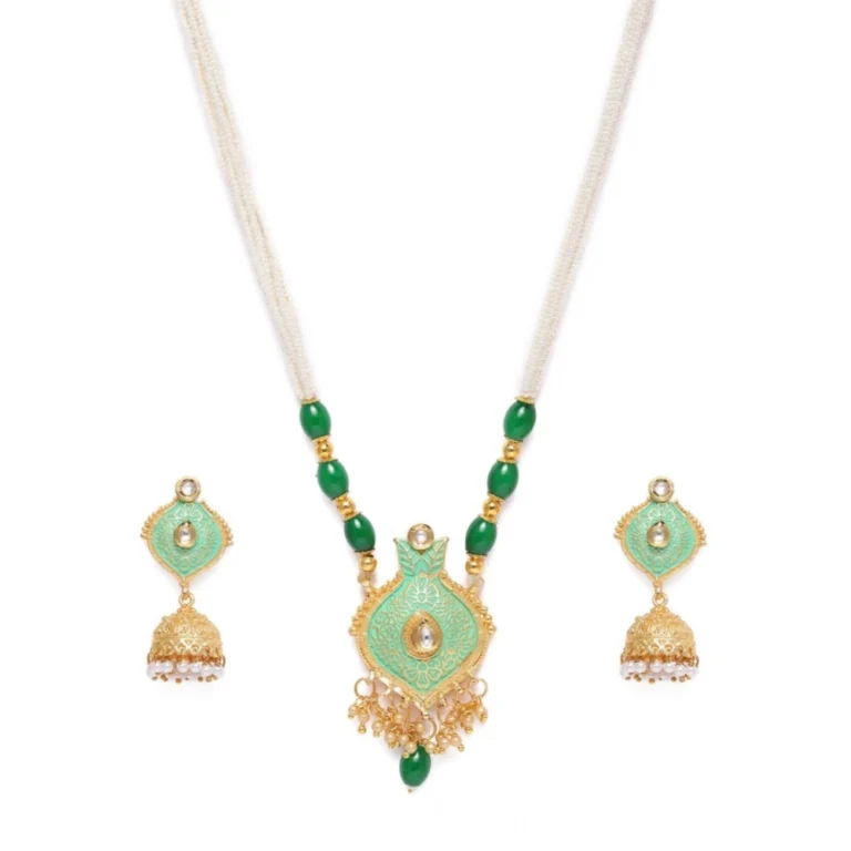Generic Women’s Rose Gold Plated Alloy Kundan Earrings & Mangtikka (Green)