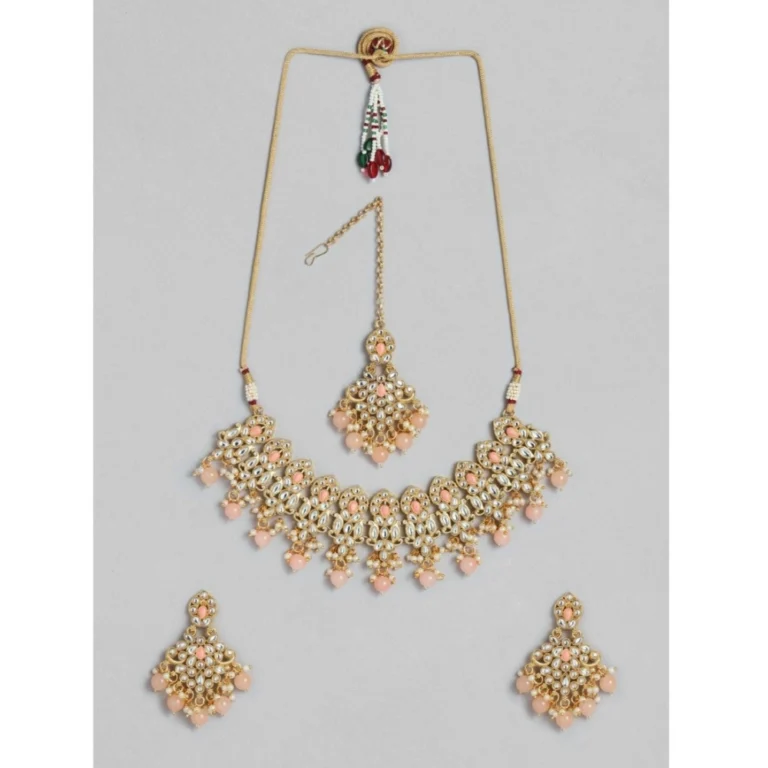 Generic Women’s Rose Gold Plated Alloy Kundan Earrings & Mangtikka (White)
