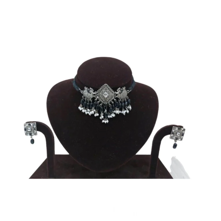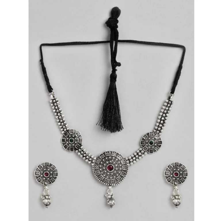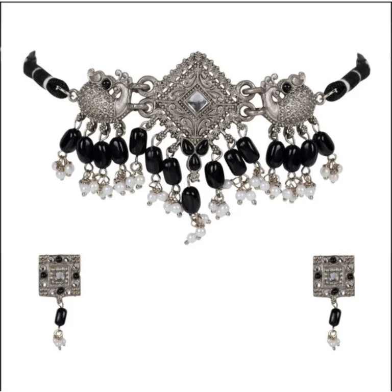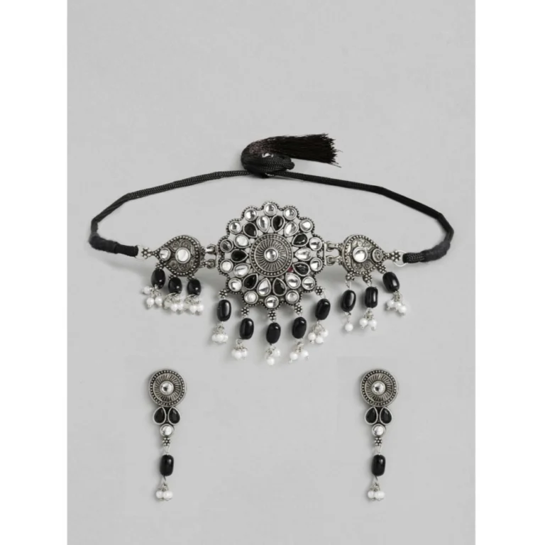 Generic Women’s Rose Gold Plated Alloy Necklace & Earings Set (Silver & Black)