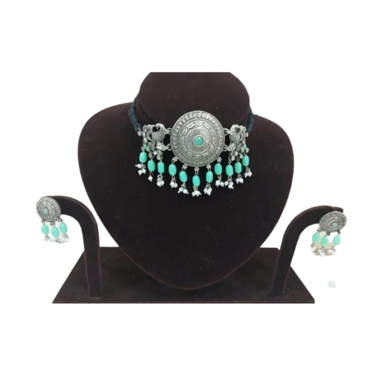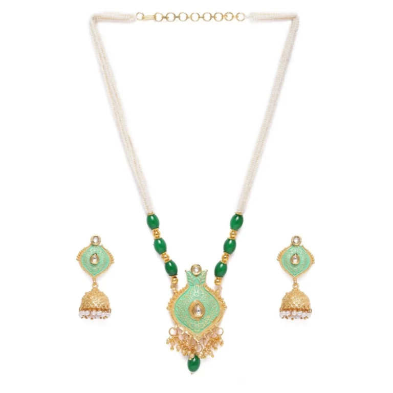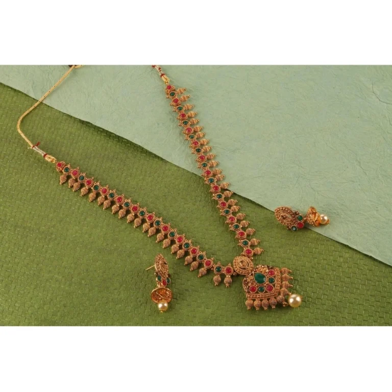 Generic Women’s Rose Gold Plated Alloy Necklace & Earings Set (Green & Red)