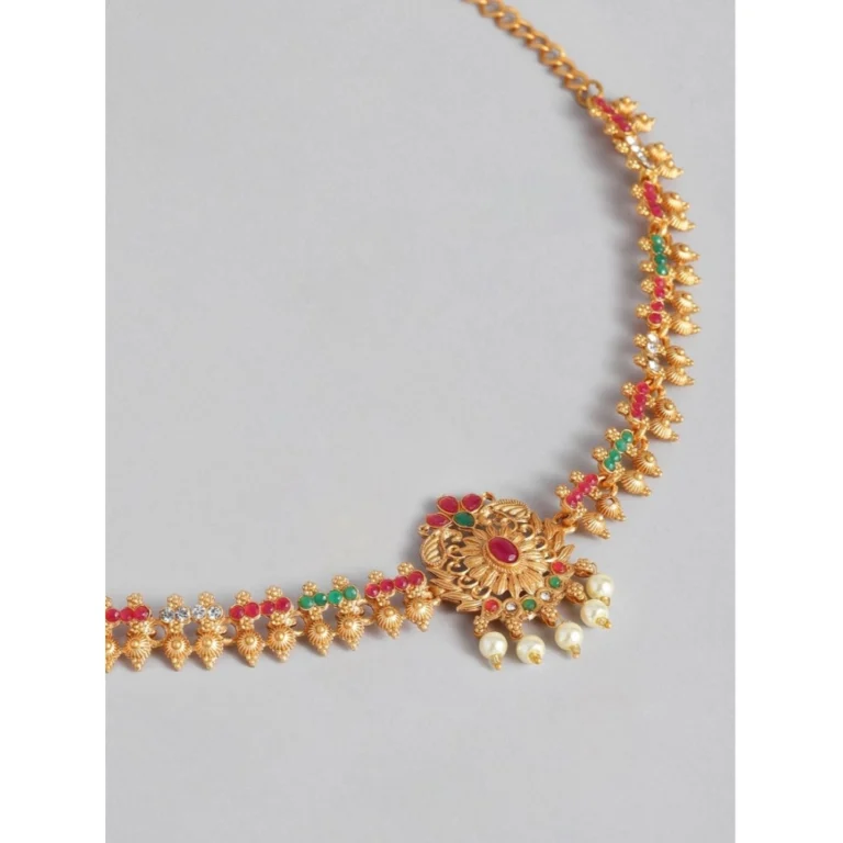 Generic Women’s Rose Gold Plated Alloy Hip Belt Kamarband (Red & Green)