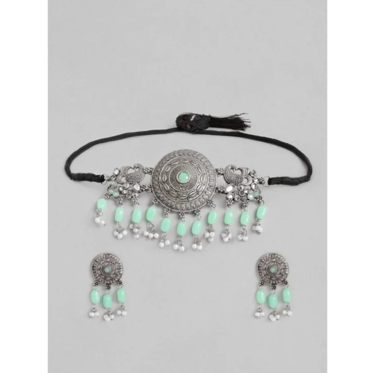 Generic Women’s Rose Gold Plated Alloy Necklace & Earings Set (Light Green)