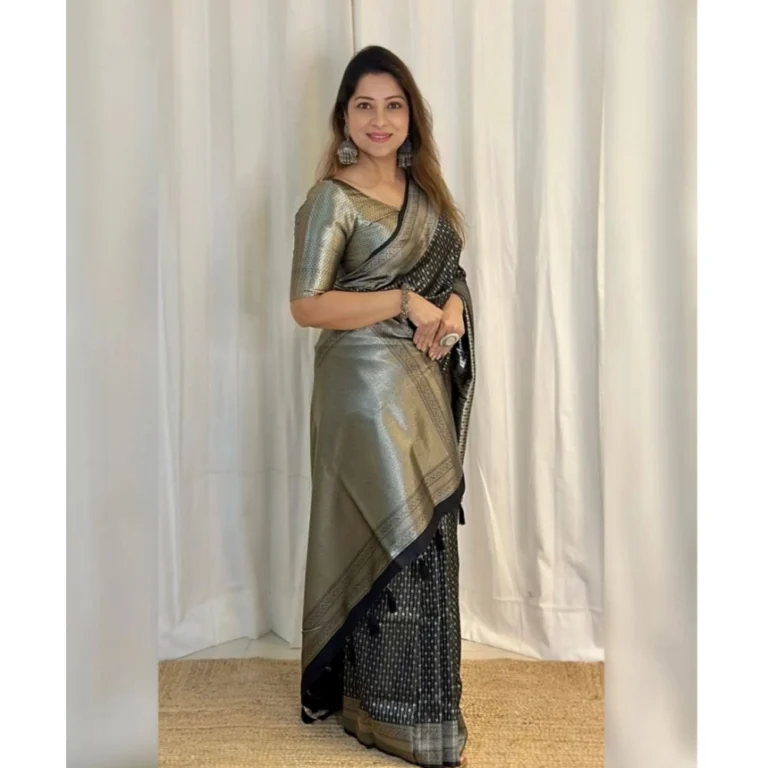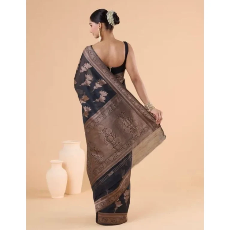 Generic Women’s Silk Printed Saree With Unstitched Blouse 5.5Mtr (Black)