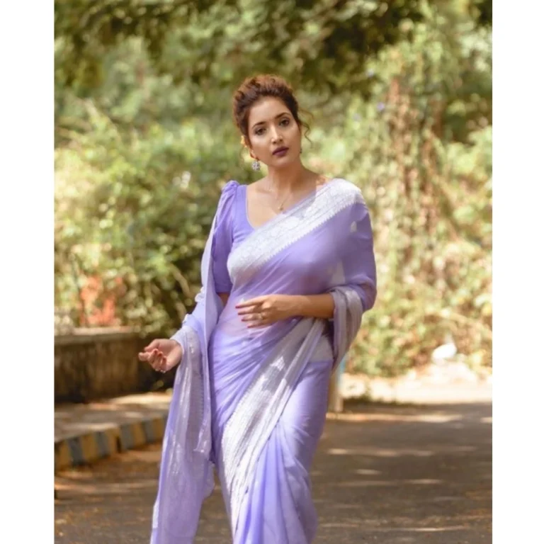 Generic Women’s Silk Printed Saree With Unstitched Blouse 5.5Mtr (Purple)