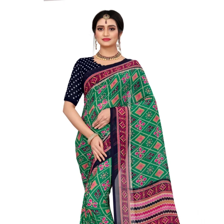Generic Women’s Georgette Floral Print Saree With Unstitched Blouse 5.5Mtr (Dark Green)