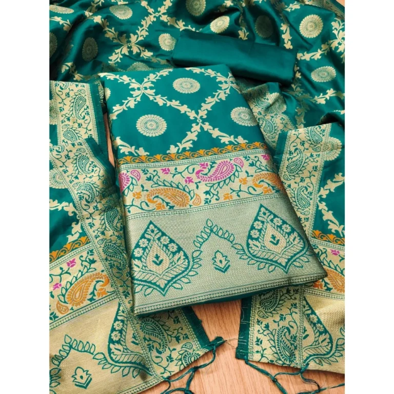 Generic Women’s Banarasi Silk Printed Unstitched Salwar Suit Material With Dupatta (Rama, 3Mtrs)