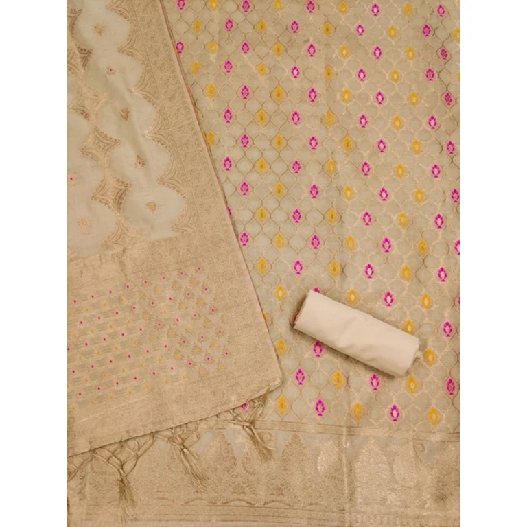 Generic Women’s Banarasi Silk Printed Unstitched Salwar Suit Material With Dupatta (Cream, 3Mtrs)