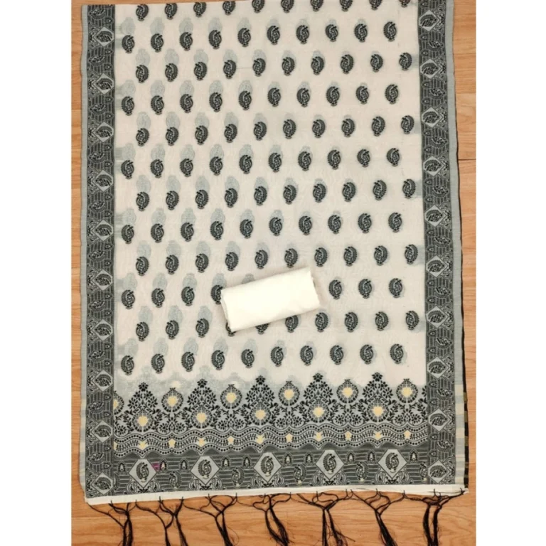 Generic Women’s Banarasi Silk Printed Unstitched Salwar Suit Material With Dupatta (OffWhite, 3Mtrs)