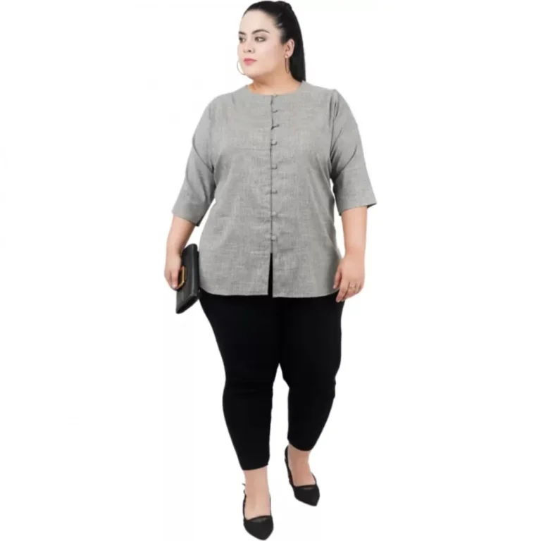Generic Women’s Casual Solid Grey Top (Color:Grey, Material:Cotton Linen Blend)