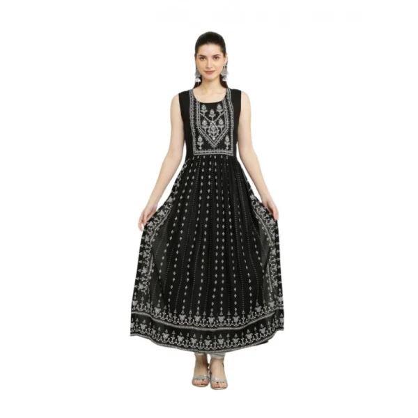 Generic Women’s Casual Rayon Sleeveless Kurti (Black)
