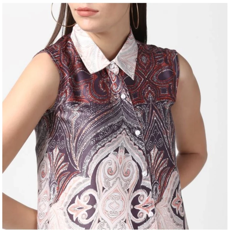 Generic Women’s Georgette Embroidery Sleeveless Round Neck Kurti, Palazzo And Dupatta Set (Wine)