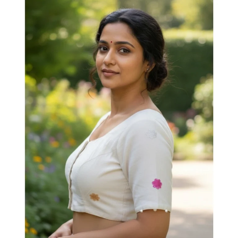 Generic Women’s Cambric Cotton Round Neck Padded Blouse (White, 38 Ready Size (Self-Alterable 36–40)