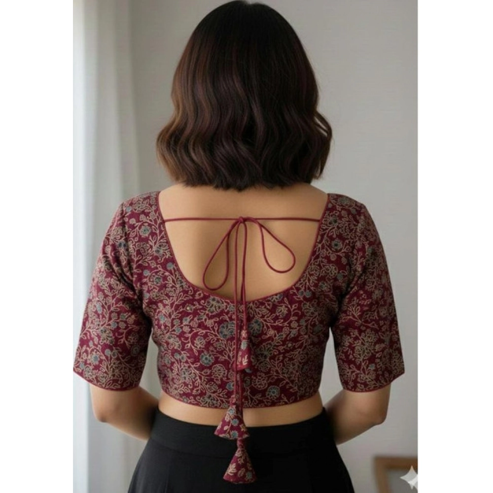Generic Women’s Ajrakh Cotton Round Neck Padded Blouse (Purple, 38 Ready Size (Self-Alterable 36–40)