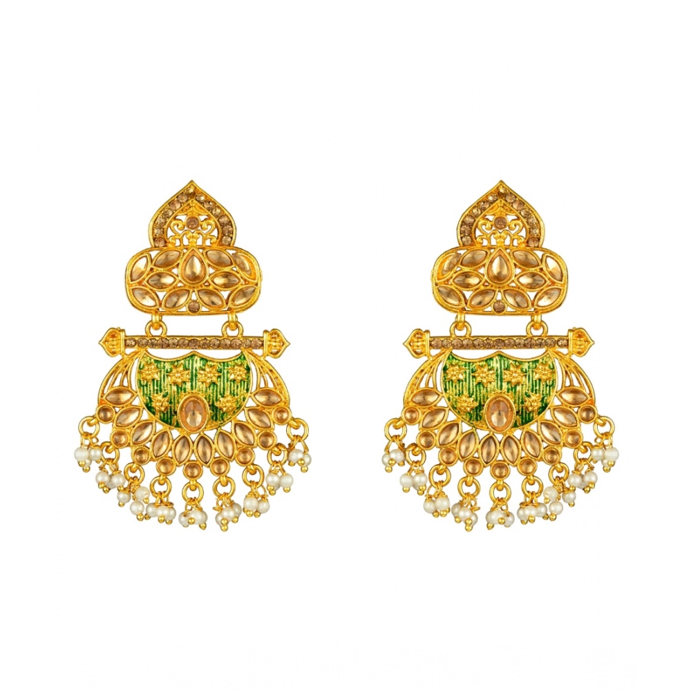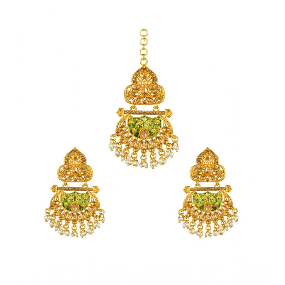 Generic Women’s Rose Gold Plated Alloy Kundan Earrings & Mangtikka (Green)