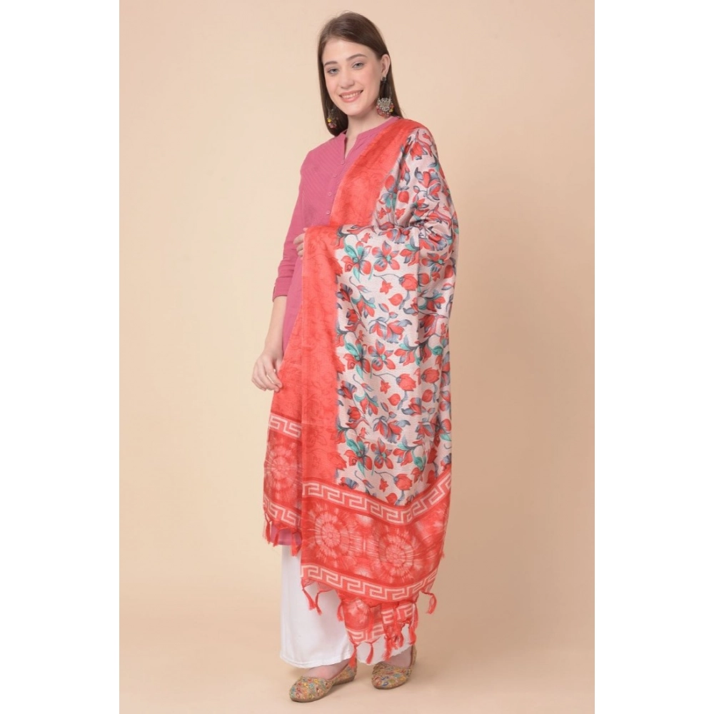 Generic Women's Art Silk Printed Dupatta (Orange, Length: 2.25 to 2.50 Mtr)