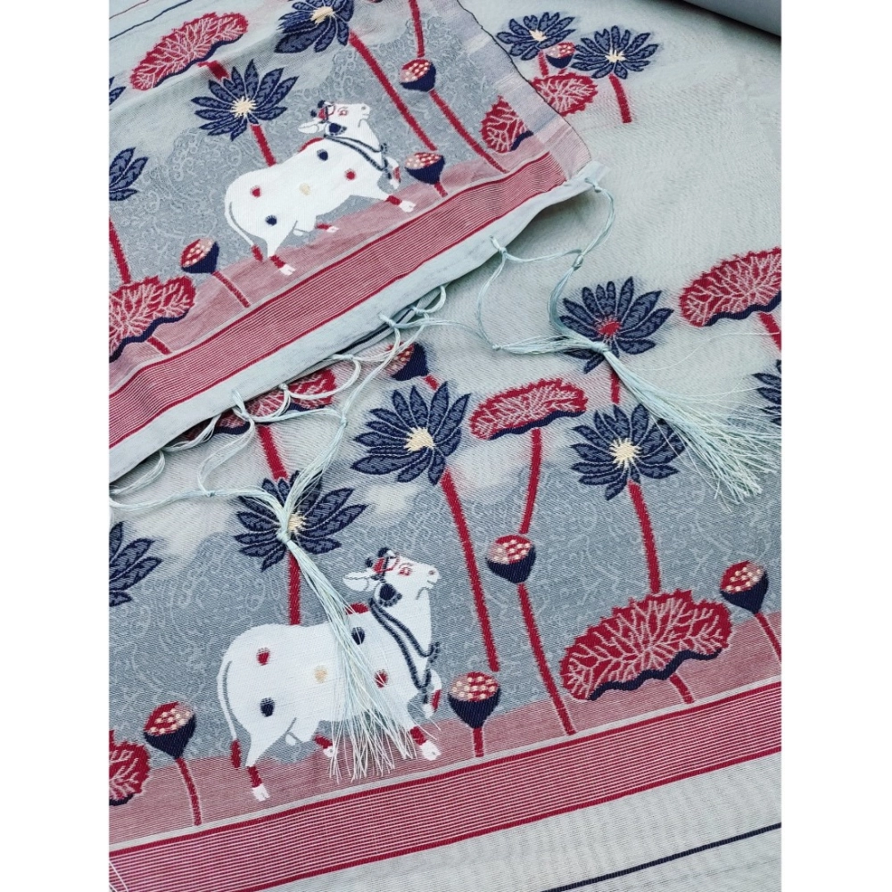 Generic Women’s Banarasi Silk Printed Unstitched Salwar Suit Material With Dupatta (Grey, 3Mtrs)