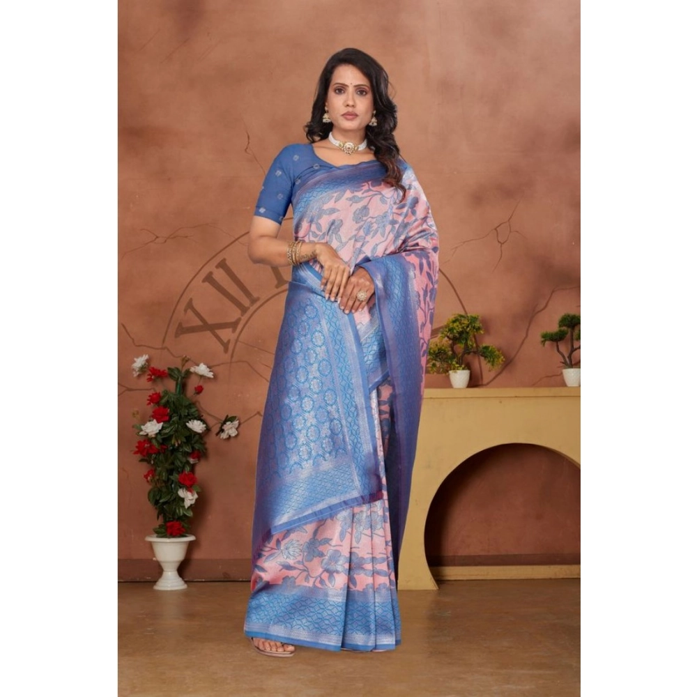 Generic Women’s Banarasi Silk Jaquard Woven Saree With Unstitched Blouse 5.5Mtr (Pink)