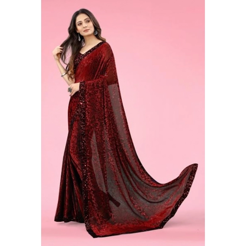 Generic Women’s Lycra Floral Saree With Unstitched Blouse (Maroon, 5.5 Mtr)