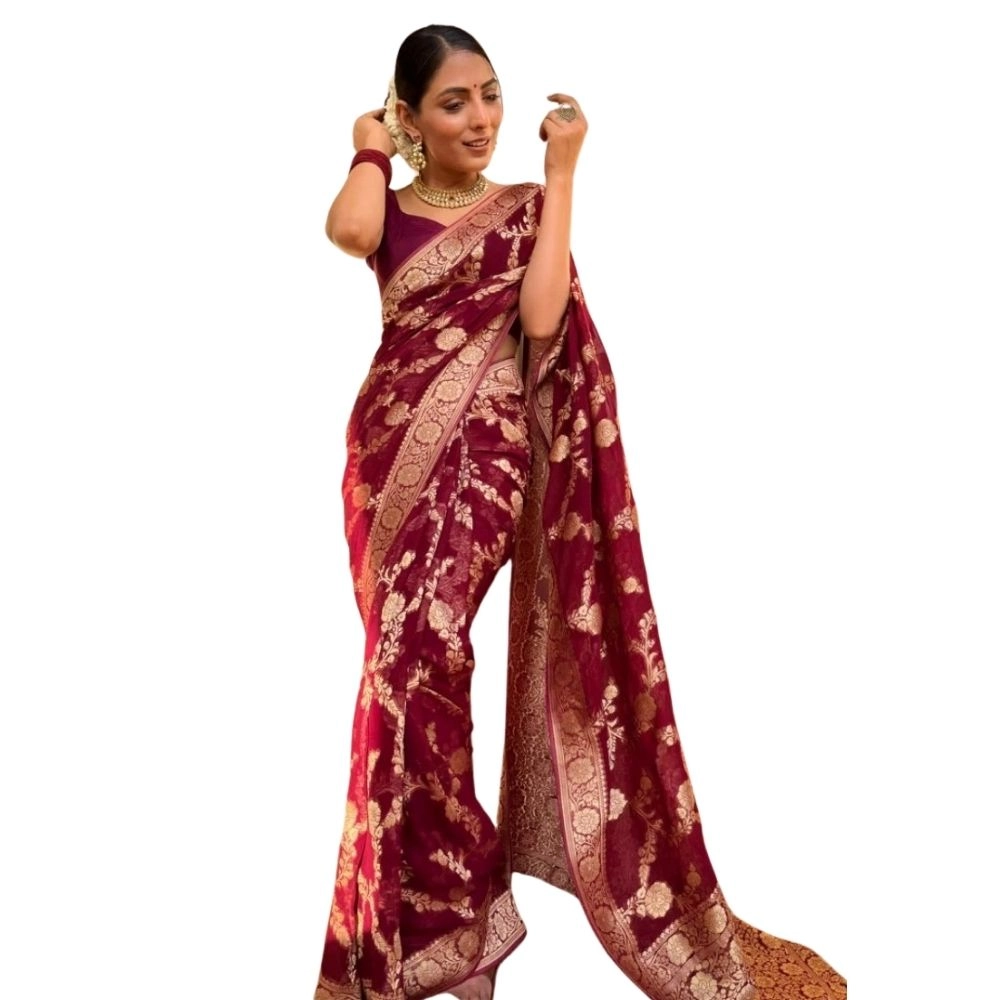 Generic Women’s Silk Printed Saree With Unstitched Blouse 5.5Mtr (Maroon)