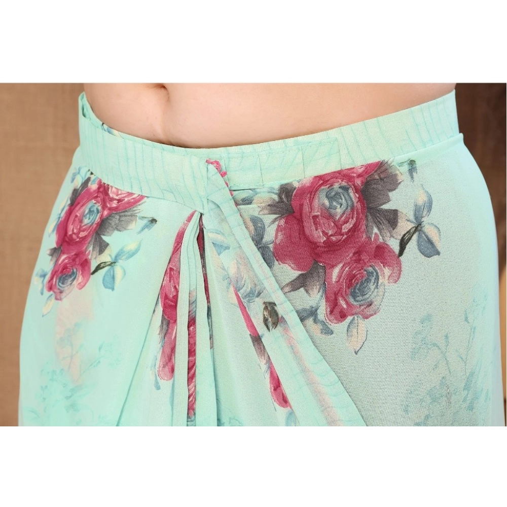Generic Women’s Small Lace Georgette Printed Ready-to-Wear Saree With Unstitched Blouse 5.5 Mtr (Turquoise)