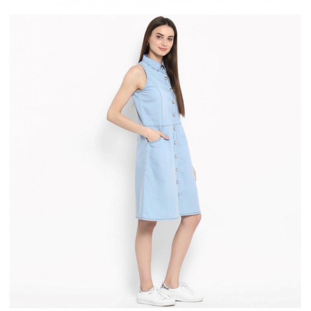 Generic Women's Denim Solid Sleeveless Above Knee Dress (Blue)