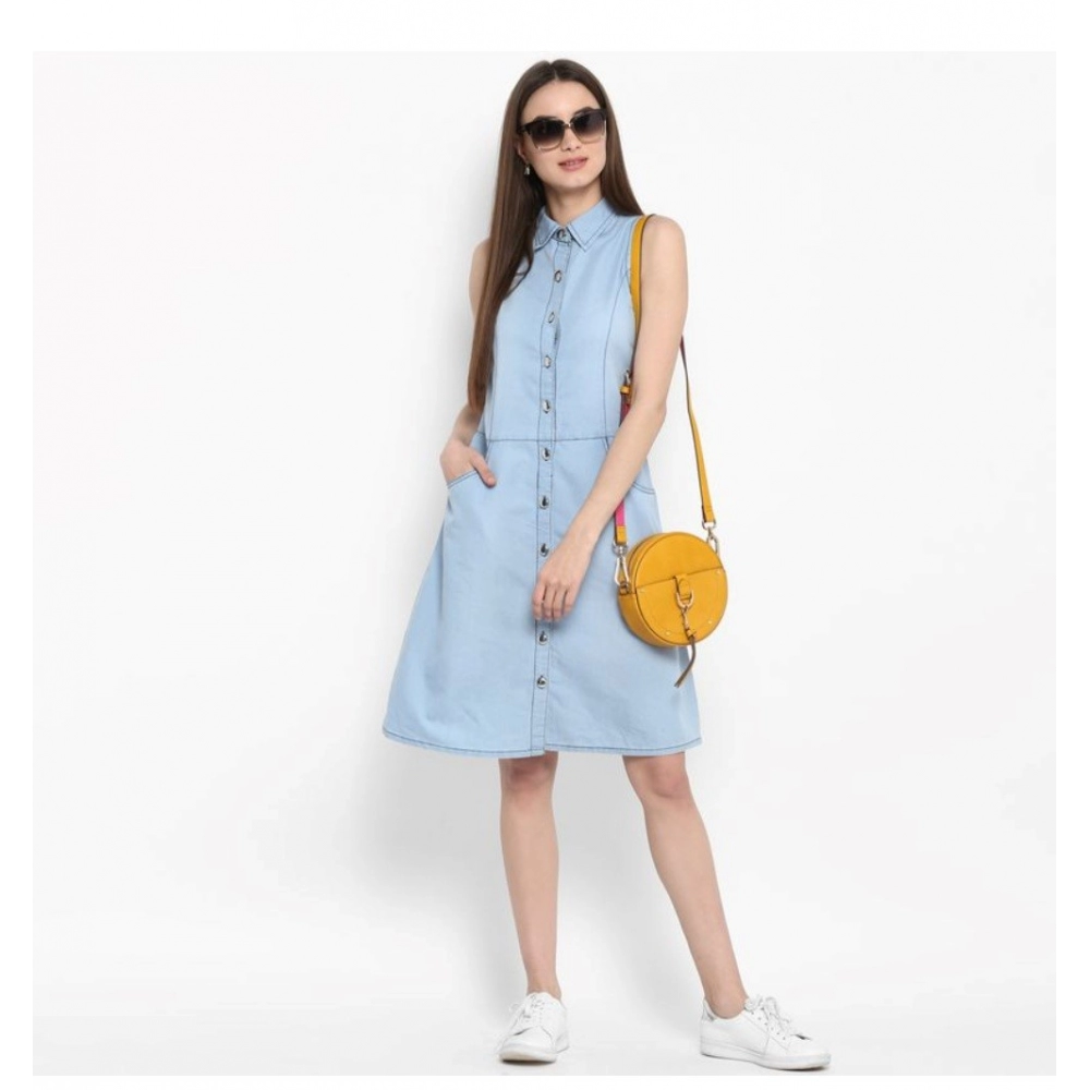 Generic Women's Denim Solid Sleeveless Above Knee Dress (Blue) Original price was: ₹1,551.00.Current price is: ₹816.00.