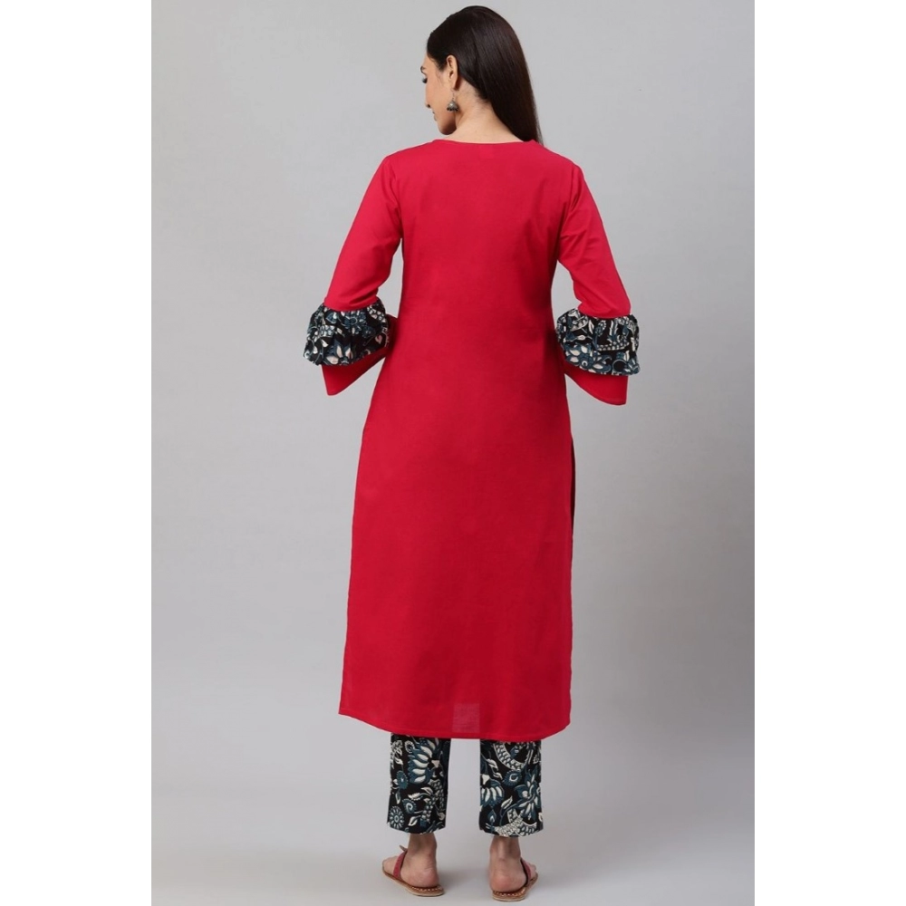 Women’s Casual Bell Sleeves Floral Printed Cotton Kurti Set