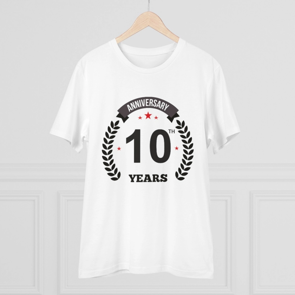Generic Men’s PC Cotton 10th Anniversary Printed T Shirt (Color: White, Thread Count: 180GSM)