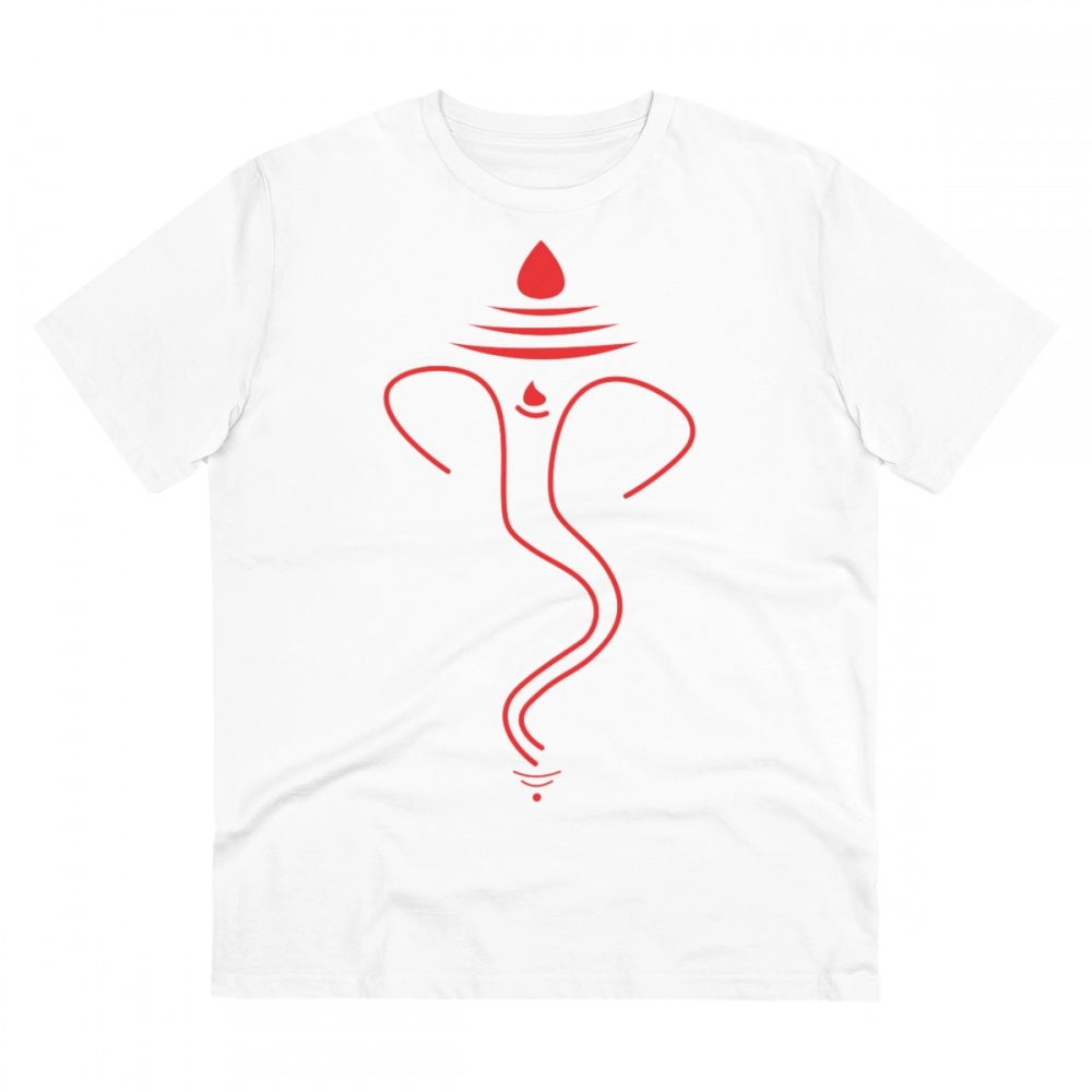 Men’s PC Cotton Ganesh Printed T Shirt (Color: White, Thread Count: 180GSM)