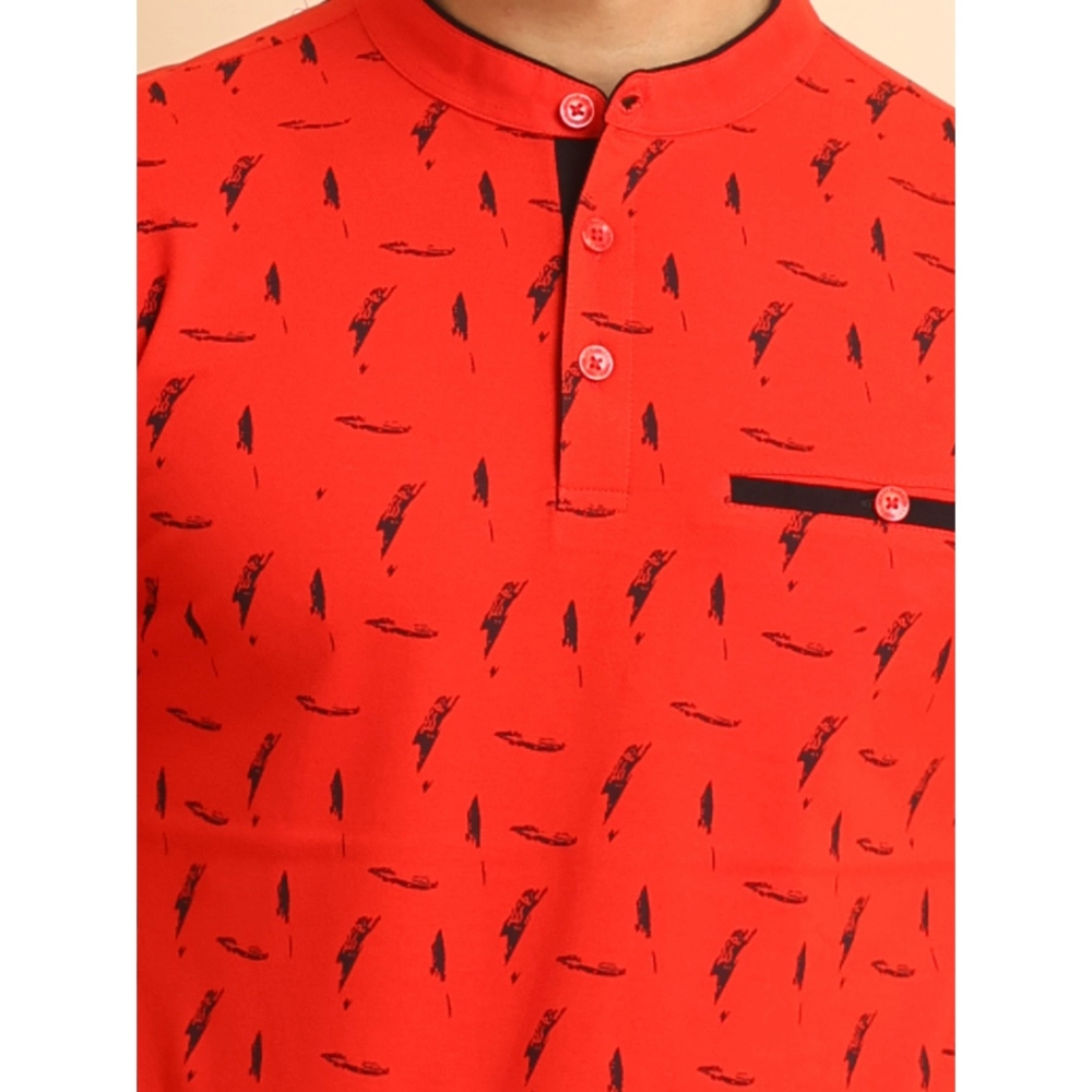 Be the first to review “Generic Men’s Casual Cotton Printed Mandarin Collar Half Sleeve T-Shirt (Red)”