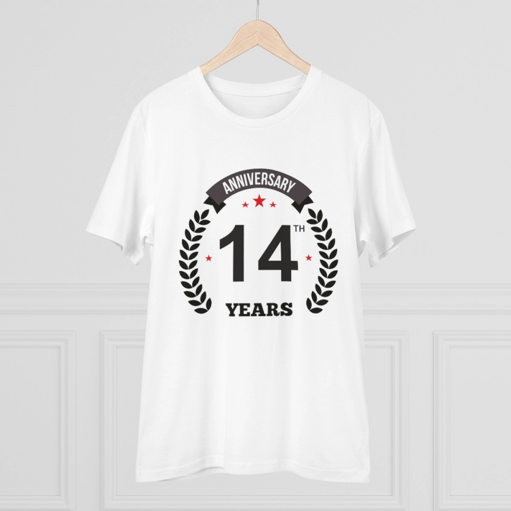 Generic Men’s PC Cotton 14th Anniversary Printed T Shirt (Color: White, Thread Count: 180GSM)