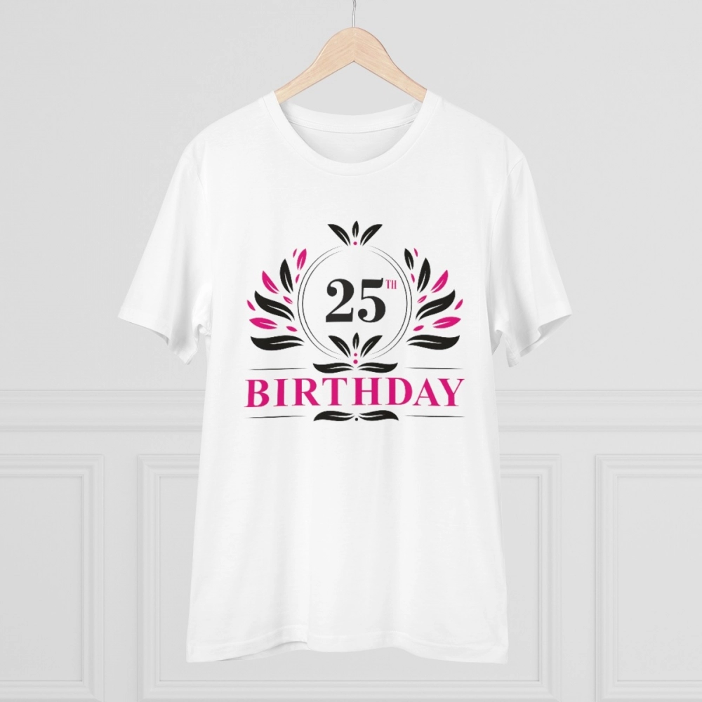 Generic Men’s PC Cotton 25th Birthday Printed T Shirt (Color: White, Thread Count: 180GSM)
