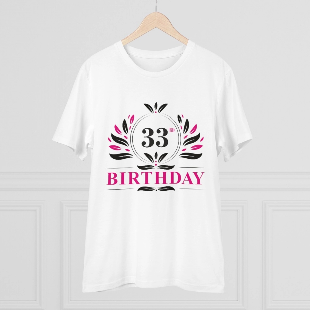 Generic Men’s PC Cotton 33rd Birthday Printed T Shirt (Color: White, Thread Count: 180GSM)